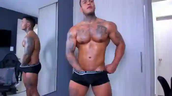 His birthday is August 16th 1994 making him 31 years old, and the average age of models on Flirt4Free is 25—making him one of the older models. His height is 182cm, and his weight is 92kg. He identifies his ethnicity as hispanic. He has a trimmed pubic hair, muscular body with black eyes and short brown hair.His body art includes piercings, tattoo(s).