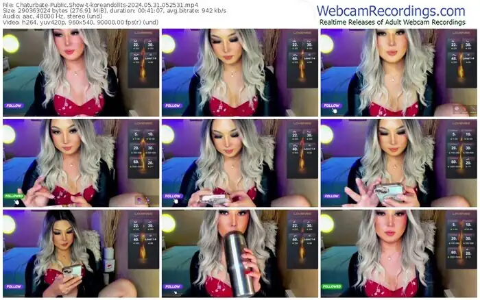 There are a total of 30 recordings (22 hours) of koreandollts from Chaturbate available below.