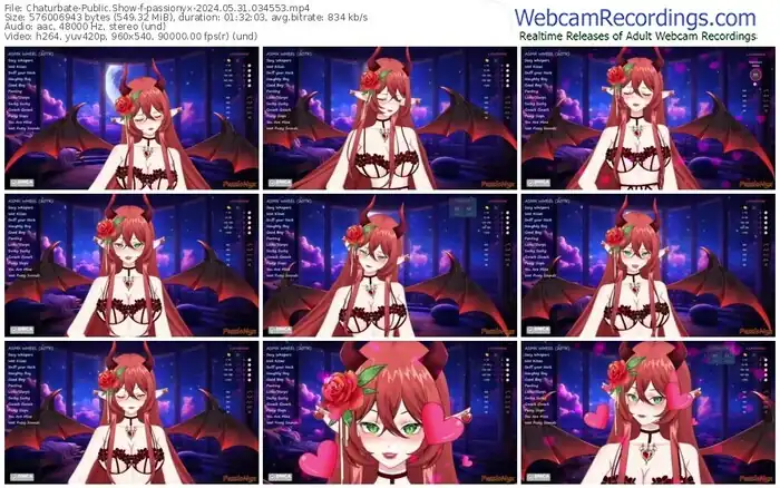 There are a total of 6 recordings (6 hours) of passionyx from Chaturbate available below.