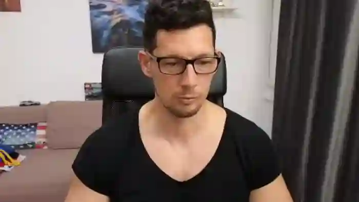 His birthday is August 8th 1991 making him 34 years old, and the average age of models on Flirt4Free is 25—making him one of the older models. His height is 183cm, and his weight is 93kg. He identifies his ethnicity as caucasian. He has a trimmed pubic hair, muscular body with green eyes and short black hair.