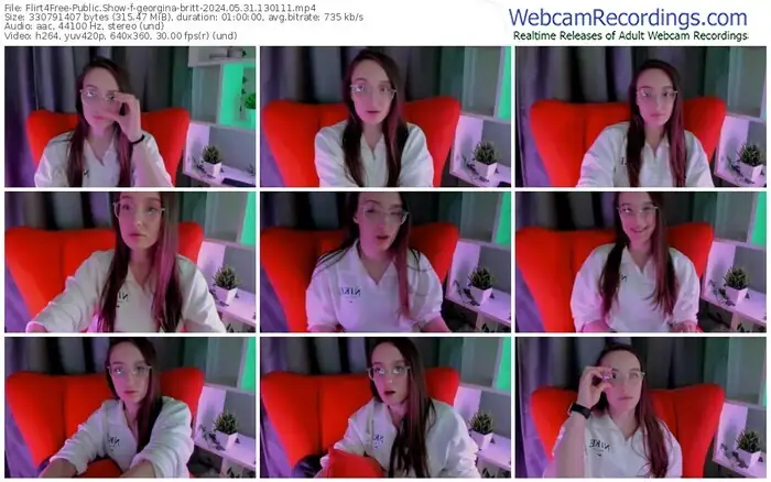 There are a total of 7 recordings (7 hours) of georgina-britt from Flirt4Free available below.