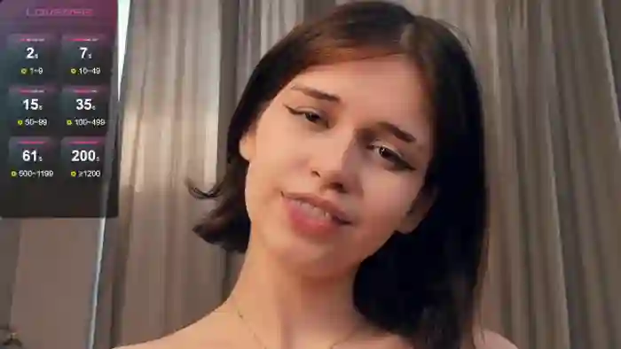 Her birthday is April 14th 2005 making her 19 years old, and the average age of models on Flirt4Free is 25—making her one of the younger models. Her height is 181cm, and her weight is 50kg. She identifies her ethnicity as caucasian. She has a shaved pubic hair, and d cup breasts on a slim body with green eyes and shoulder black hair.