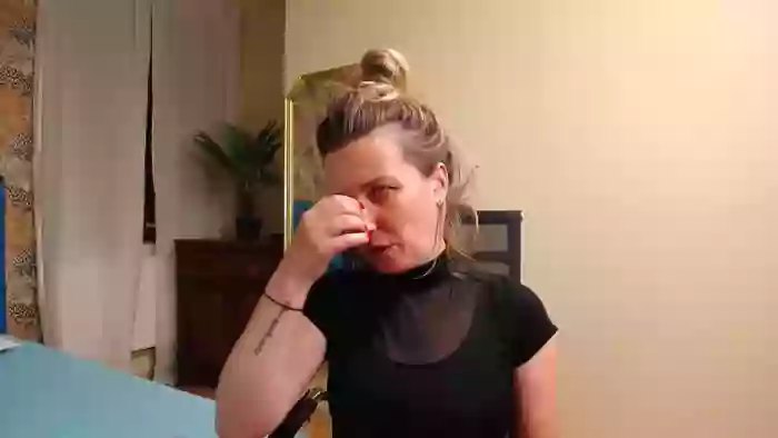 She is 41 years old, and the average age of models on Streamate is 30—making her one of the older models. Her height is 5'1, and her weight is 115 lbs. She identifies her ethnicity as european. She has a b cup size breasts, bald pubic hair on an average body with blue eyes and blond hair.Her body art includes tattoos, piercings.