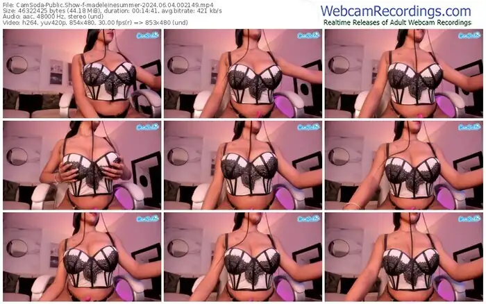 There are a total of 267 recordings (107 hours) of madeleinesummer from CamSoda available below.