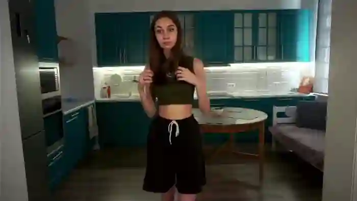 Her birthday is July 7th 2006 making her 18 years old, and the average age of models on Flirt4Free is 25—making her one of the younger models. Her height is 173cm, and her weight is 50kg. She identifies her ethnicity as caucasian. She has a shaved pubic hair, and b cup breasts on a slim body with grey eyes and long brown hair.Her body art includes piercings.