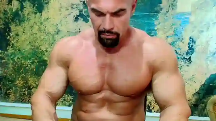 His birthday is May 8th 1983 making him 42 years old, and the average age of models on Flirt4Free is 25—making him one of the older models. His height is 188cm, and his weight is 110kg. He identifies his ethnicity as caucasian. He has a shaved pubic hair, muscular body with green eyes and bald bald hair.