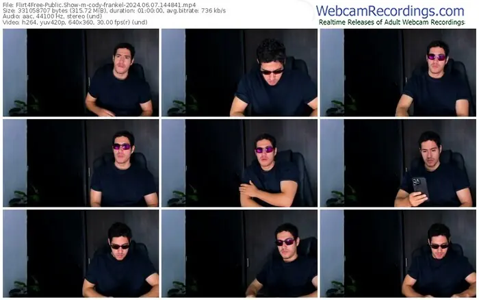 There are a total of 228 recordings (158 hours) of cody-frankel from Flirt4Free available below.