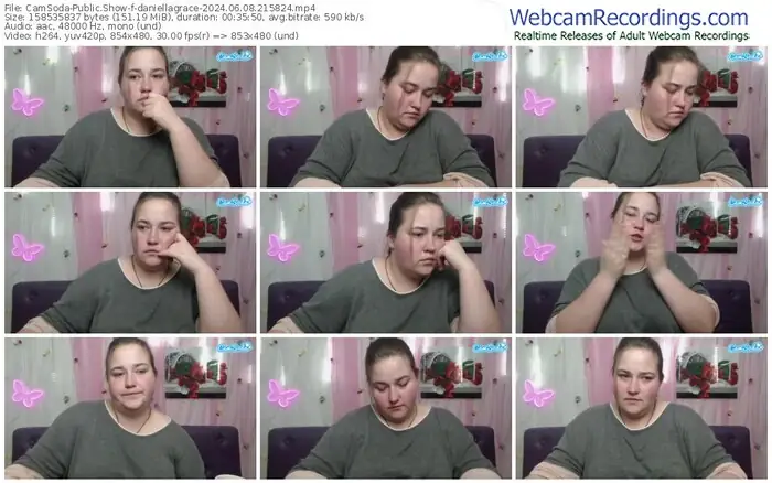 There are a total of 8 recordings (4 hours) of daniellagrace from CamSoda available below.