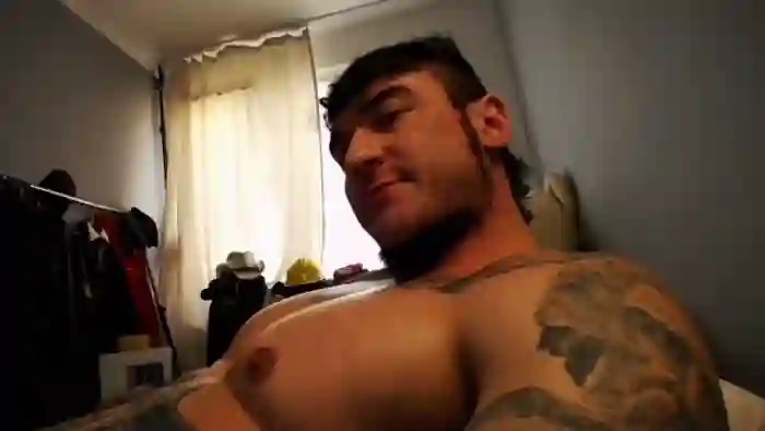His birthday is June 15th 1996 making him 29 years old, and the average age of models on Flirt4Free is 25—making him one of the older models. His height is 180cm, and his weight is 95kg. He identifies his ethnicity as caucasian. He has a trimmed pubic hair, muscular body with hazel eyes and short black hair.His body art includes tattoo(s).