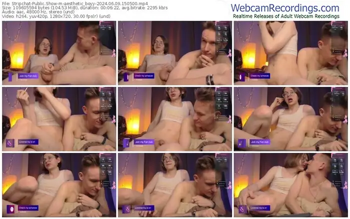 There are a total of 144 recordings (103 hours) of aesthetic_boyy from Stripchat available below.