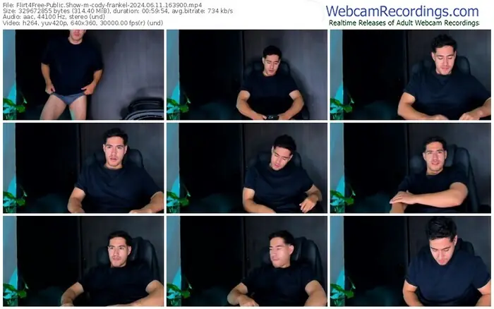 There are a total of 228 recordings (158 hours) of cody-frankel from Flirt4Free available below.