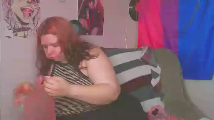 She is 19 years old, and the average age of models on Streamate is 30—making her one of the younger models. Her height is 5'6, and her weight is 219 lbs. She identifies her ethnicity as white. She has a h cup size breasts, trimmed pubic hair on a bbw body with green eyes and red hair.Her body art includes tattoos, piercings.