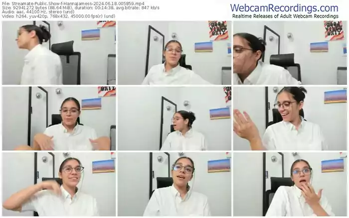 There are a total of 90 recordings (40 hours) of HannaJamess from Streamate available below.