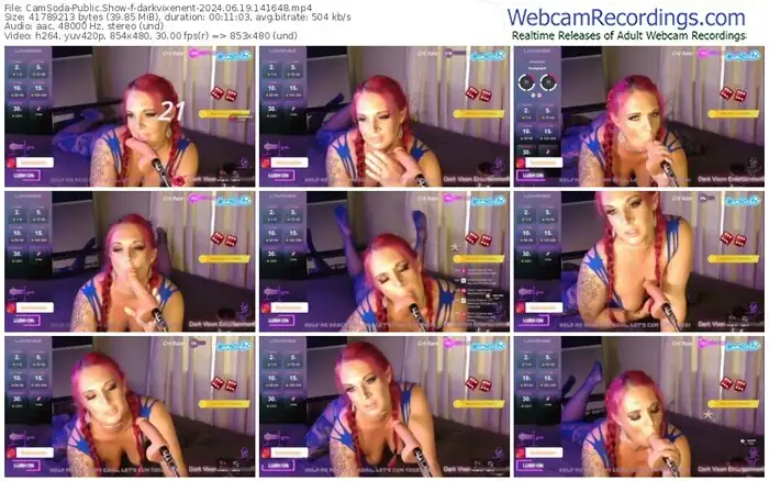 There are a total of 22 recordings (13 hours) of darkvixenent from CamSoda and Stripchat available below.