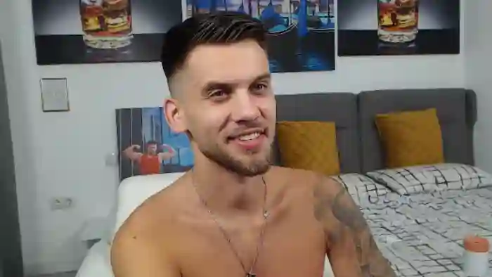 His birthday is February 4th 2000 making him 25 years old. His height is 176cm, and his weight is 77kg. He identifies his ethnicity as caucasian. He has a trimmed pubic hair, muscular body with blue eyes and short blonde hair.His body art includes tattoo(s).