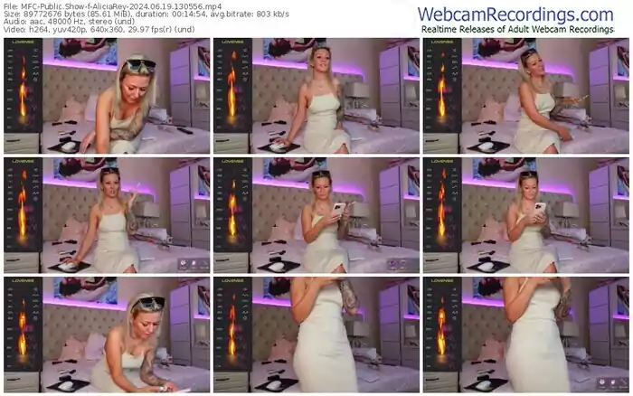 There are a total of 2,104 recordings (1,276 hours) of AliciaRey from MyFreeCams and CamSoda available below.
