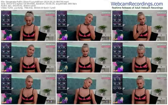 There are a total of 1,702 recordings (637 hours) of LucyAddison from Streamate, MFC, Stripchat, and Chaturbate available below.