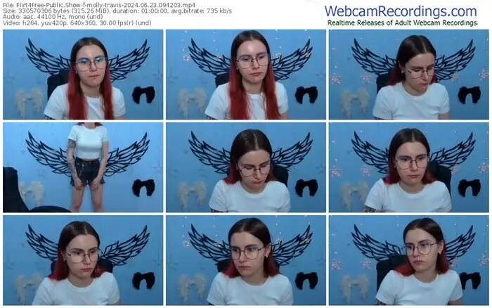 There are a total of 1,093 recordings (543 hours) of molly-travis from Flirt4Free available below.
