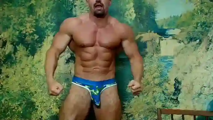 His birthday is May 8th 1983 making him 42 years old, and the average age of models on Flirt4Free is 25—making him one of the older models. His height is 188cm, and his weight is 110kg. He identifies his ethnicity as caucasian. He has a shaved pubic hair, muscular body with green eyes and bald bald hair.