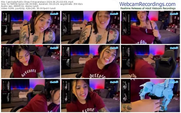 There are a total of 281 recordings (205 hours) of miacanelaxo from CamSoda and Bongacams available below.