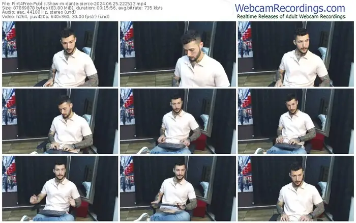 There are a total of 45 recordings (28 hours) of dante-pierce from Flirt4Free available below.