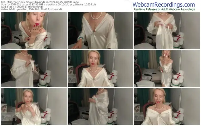 There are a total of 51 recordings (9 hours) of LuxuryNika from Stripchat and Bongacams available below.