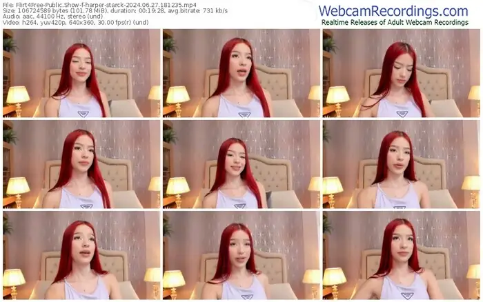 There are a total of 54 recordings (41 hours) of harper-starck from Flirt4Free available below.