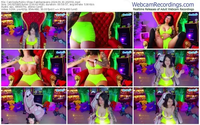 There are a total of 935 recordings (744 hours) of ambarevans from CamSoda, MFC, Bongacams, and Stripchat available below.