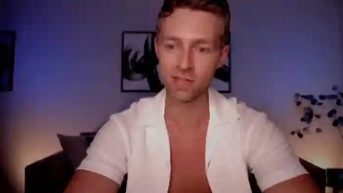 His birthday is June 21st 1991 making him 34 years old, and the average age of models on Flirt4Free is 25—making him one of the older models. His height is 182cm, and his weight is 78kg. He identifies his ethnicity as caucasian. He has a trimmed pubic hair, athletic body with blue eyes and average blonde hair.