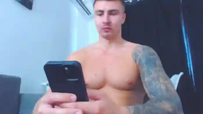 His birthday is July 18th 1997 making him 28 years old, and the average age of models on Flirt4Free is 25—making him one of the older models. His height is 183cm, and his weight is 83kg. He identifies his ethnicity as caucasian. He has a shaved pubic hair, muscular body with blue eyes and short blonde hair.His body art includes tattoo(s).