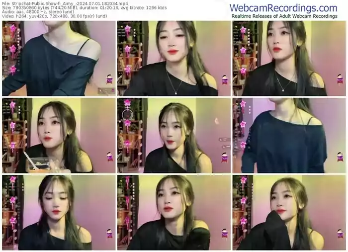 There are a total of 1,158 recordings (889 hours) of _Aimy_ from Stripchat available below.