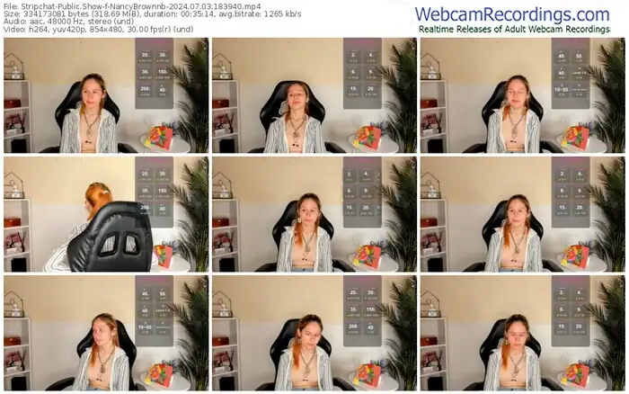 There are a total of 5 recordings (5 hours) of NancyBrownnb from Stripchat available below.