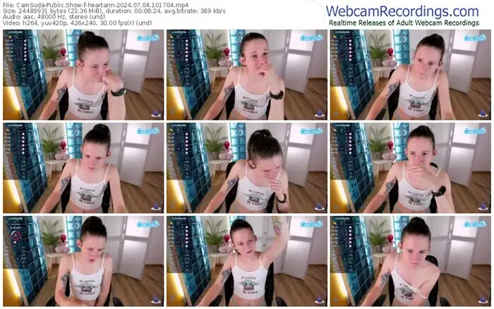 There are a total of 203 recordings (112 hours) of heartann from CamSoda and Chaturbate available below.
