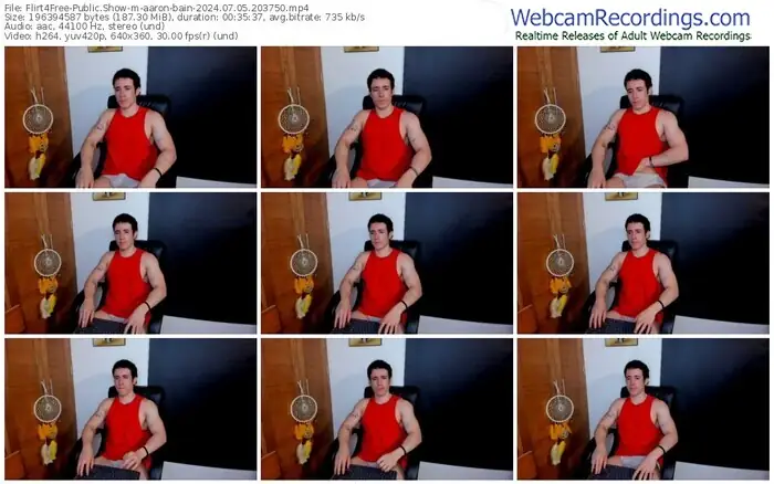 There are a total of 279 recordings (188 hours) of aaron-bain from Flirt4Free available below.