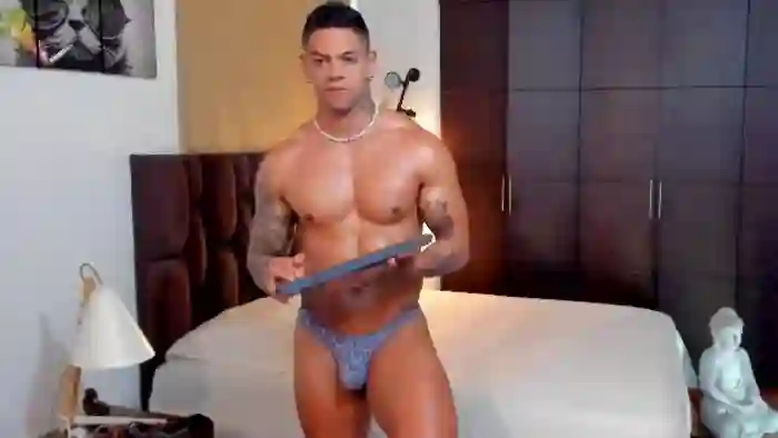 His birthday is October 9th 1987 making him 38 years old, and the average age of models on Flirt4Free is 25—making him one of the older models. His height is 180cm, and his weight is 92kg. He identifies his ethnicity as hispanic. He has a trimmed pubic hair, muscular body with brown eyes and short black hair.His body art includes piercings, tattoo(s).