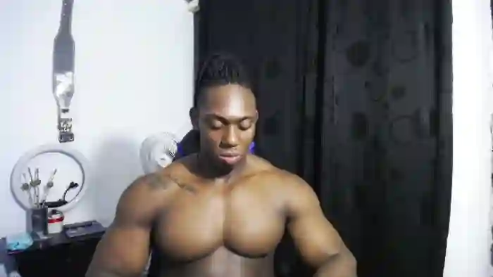 His birthday is March 24th 1999 making him 26 years old, and the average age of models on Flirt4Free is 25—making him one of the older models. His height is 185cm, and his weight is 100kg. He identifies his ethnicity as black. He has a shaved pubic hair, muscular body with black eyes and short black hair.His body art includes tattoo(s).