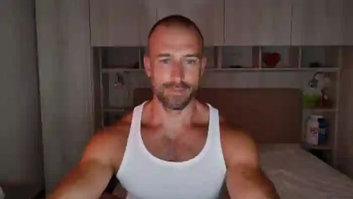 His birthday is June 30th 1992 making him 33 years old, and the average age of models on Flirt4Free is 25—making him one of the older models. His height is 187cm, and his weight is 89kg. He identifies his ethnicity as caucasian. He has a trimmed pubic hair, muscular body with blue eyes and short brown hair.