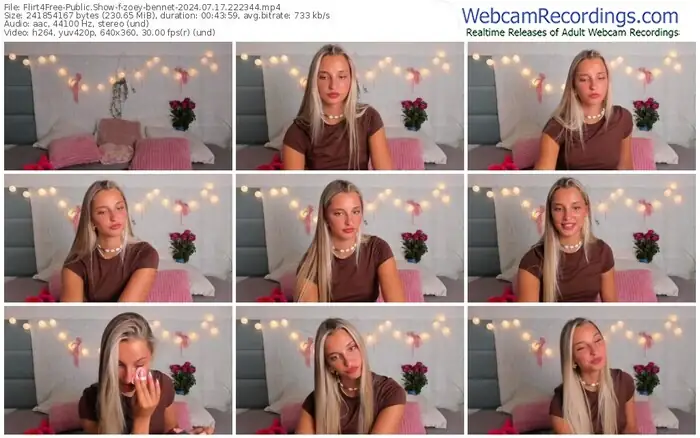 There are a total of 381 recordings (193 hours) of zoey-bennet from Flirt4Free available below.