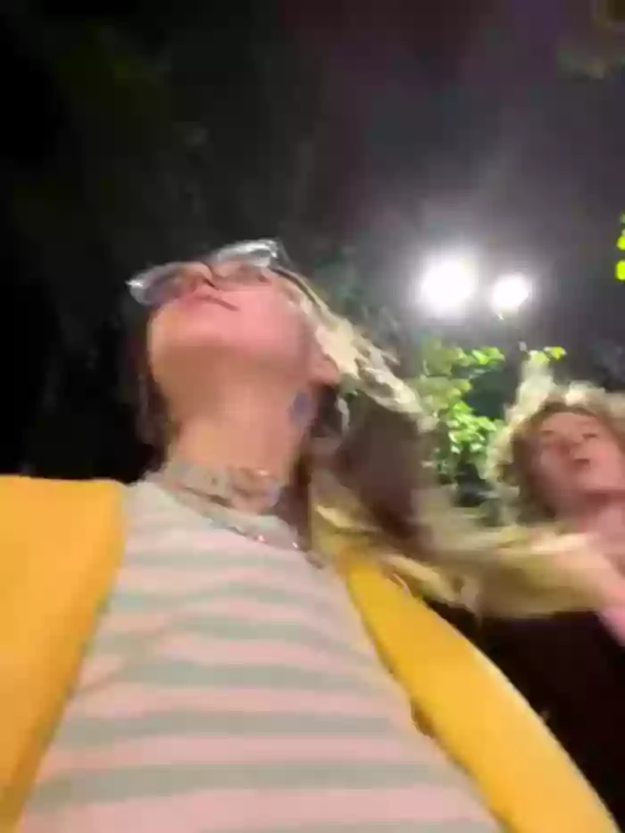 Street public stream with cutie anime student girl