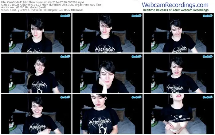 There are a total of 122 recordings (67 hours) of smilemala from CamSoda available below.
