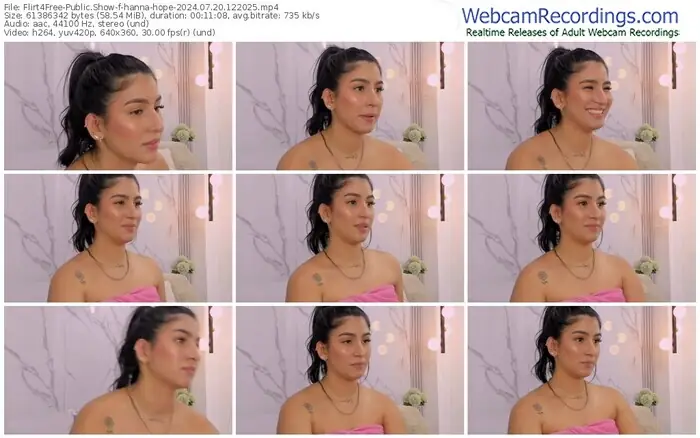 There are a total of 375 recordings (251 hours) of hanna-hope from Flirt4Free available below.