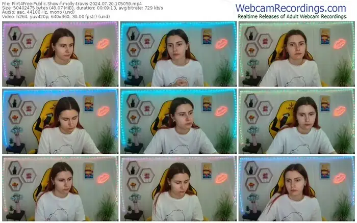 There are a total of 1,093 recordings (543 hours) of molly-travis from Flirt4Free available below.