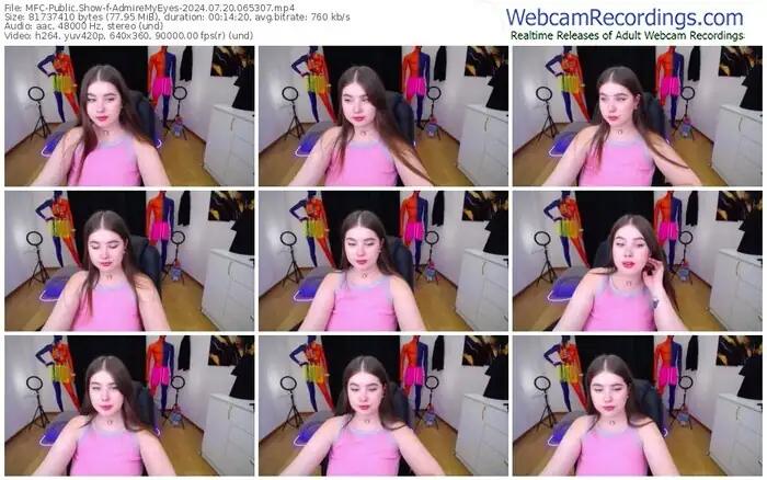 There are a total of 2,001 recordings (691 hours) of AdmireMyEyes from MyFreeCams available below.