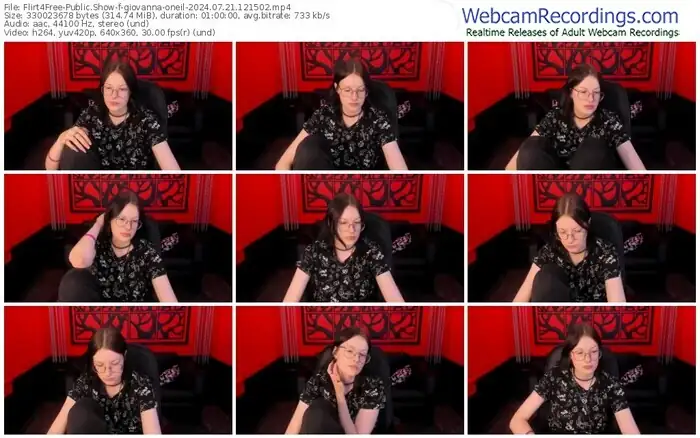 There are a total of 15 recordings (9 hours) of giovanna-oneil from Flirt4Free available below.