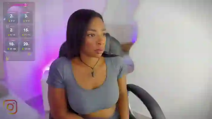 She identifies her ethnicity as ebony. She has a skinny body with big tits, big ass, shaved pussy body with brown eyes and black hair.