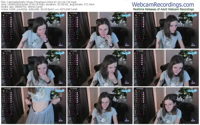 There are a total of 203 recordings (112 hours) of heartann from CamSoda and Chaturbate available below.