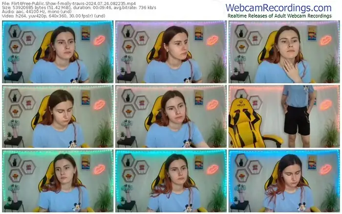 There are a total of 1,093 recordings (543 hours) of molly-travis from Flirt4Free available below.