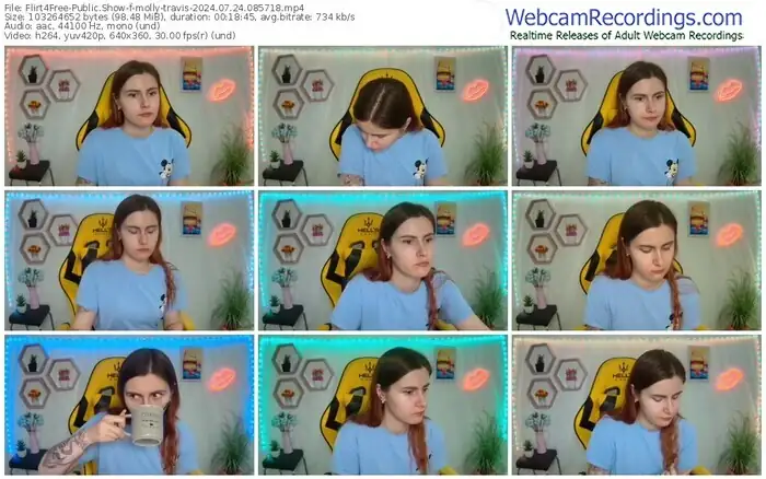 There are a total of 1,093 recordings (543 hours) of molly-travis from Flirt4Free available below.