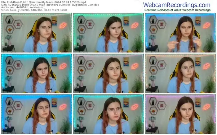 There are a total of 1,093 recordings (543 hours) of molly-travis from Flirt4Free available below.
