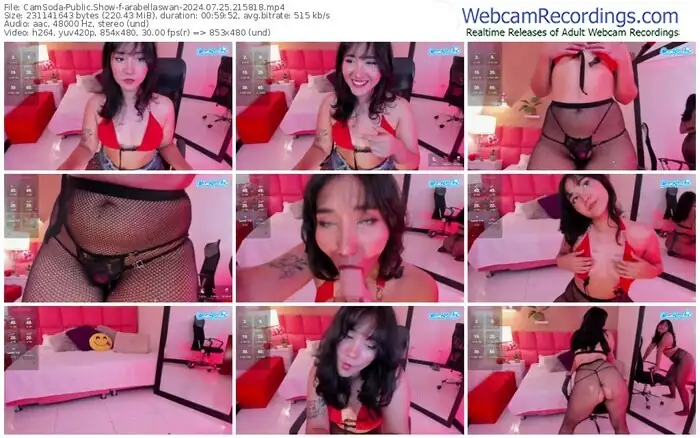 There are a total of 246 recordings (152 hours) of arabellaswan from CamSoda and Chaturbate available below.